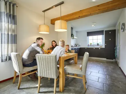 Diese Comfortausführung hat ein Obergeschoss, ist für fünf Personen geeignet und hat eine Gesamt-Wohnfläche von 110m².