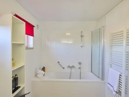 Neben dem ganzen Komfort in Form Fußbodenheizung in allen Zimmern, Flachbildschirm, geräumiger Terrasse und Geschirrspüler bietet Ihnen diese kinderfreundliche Version auch einen eingezäunten Garten, Waschtrockner, Treppengitter oben an der Treppe, gesicherte Steckdosen, einen Bollerwagen sowie ein Kinderbett, Laufställchen und Hochstuhl.